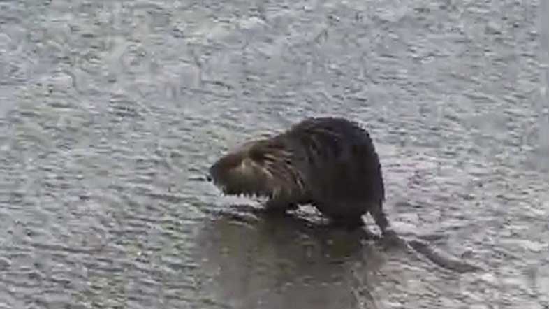 Ayer en la zona de Los Palos, en Playa Unión, apareció una nutria de río a orillas del mar.